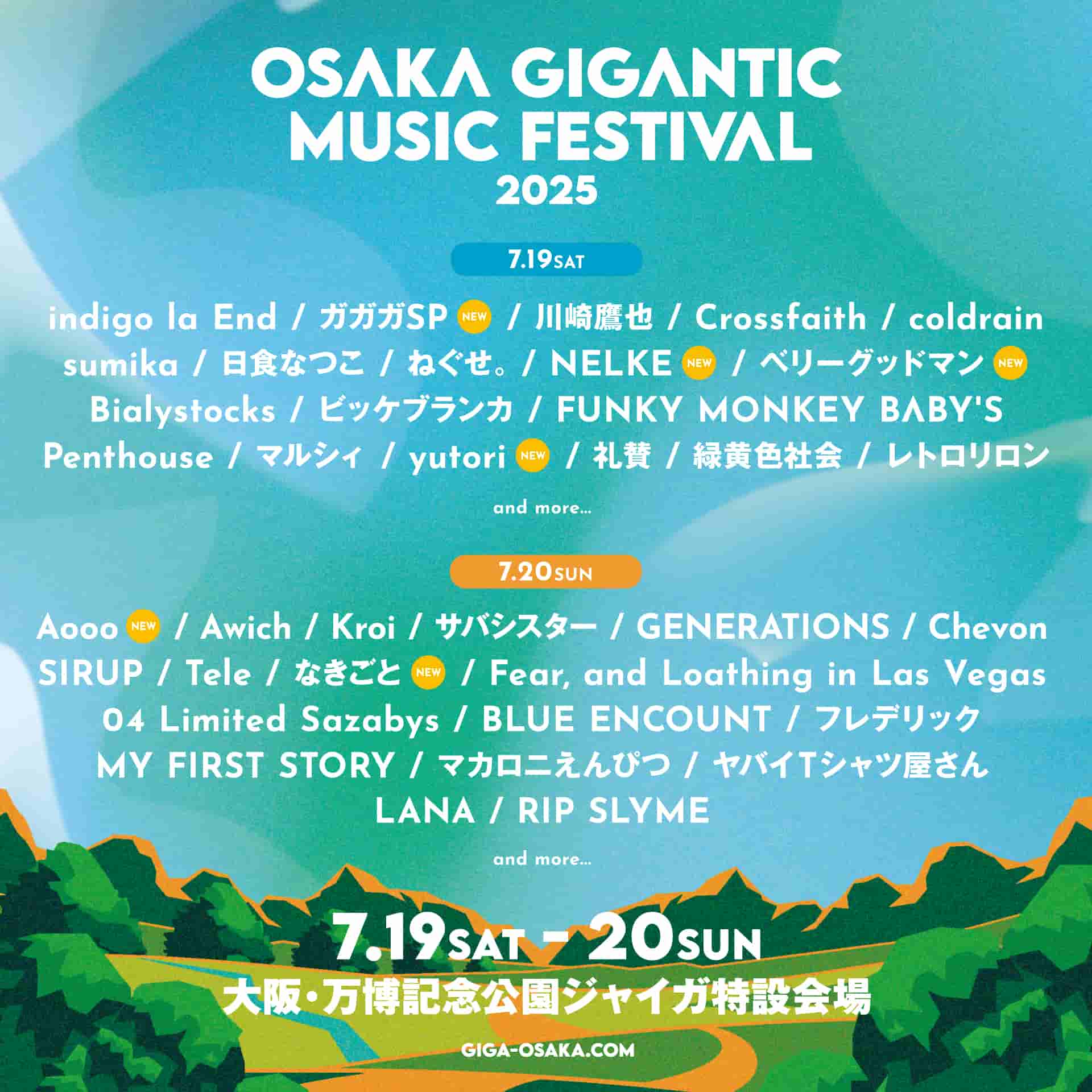 2025年7月19日(土)・20日(日)に大阪・万博記念公園にて開催される「OSAKA GIGANTIC MUSIC FESTIVAL 2025」(ジャイガ)の第3弾出演アーティストが発表された。