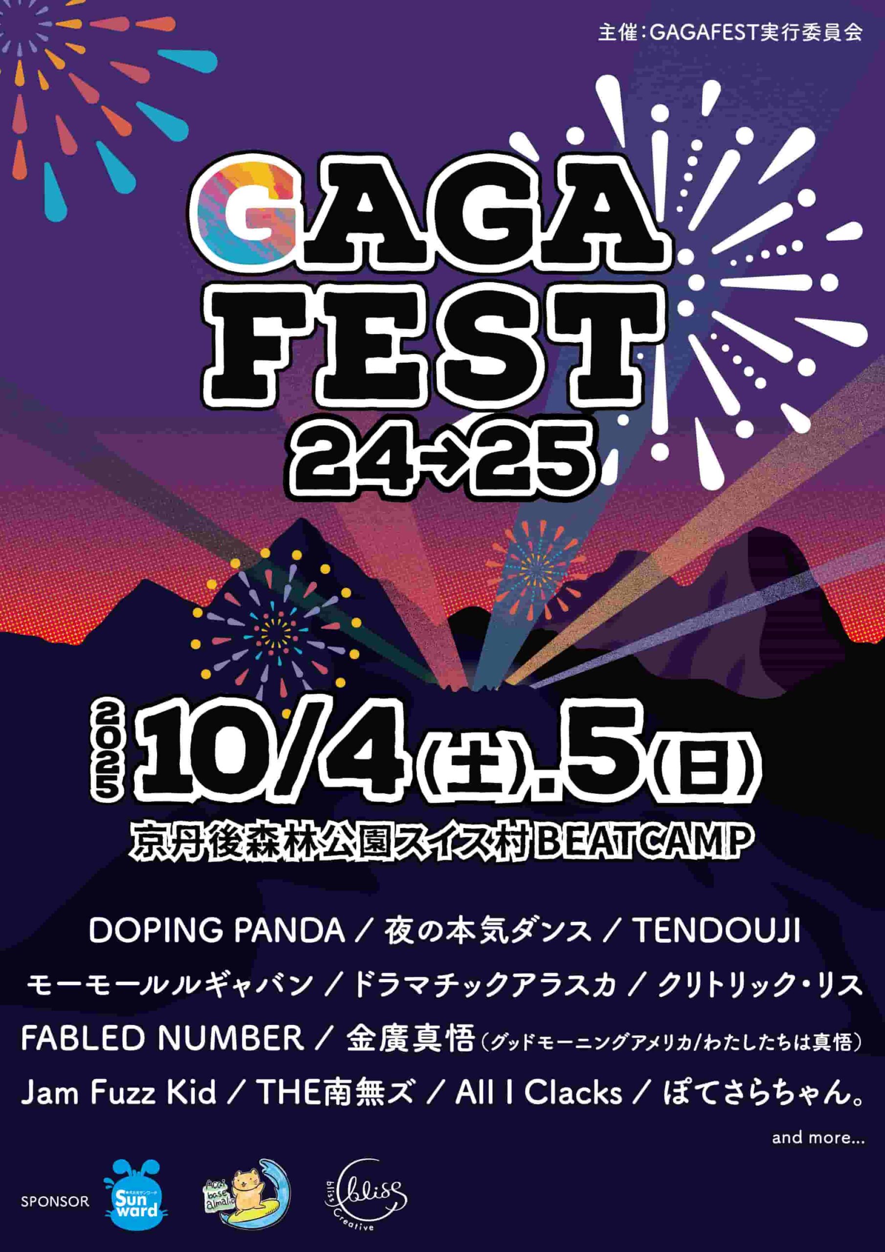 2025年10月4日(土)・5日(日)に京都・京丹後森林公園スイス村 BEATCAMPにて開催される「GAGAFEST24→25」の第1弾出演アーティストが発表された。