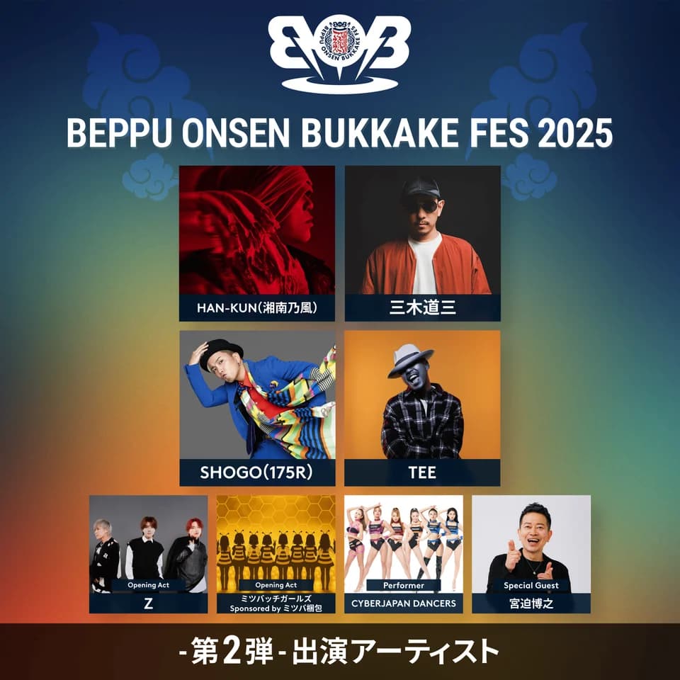 2025年8月23日(土)に大分・的ヶ浜公園・別府スパビーチにて開催される「BOB2025」(別府温泉ぶっかけフェス2025)の第2弾出演アーティストが発表された。