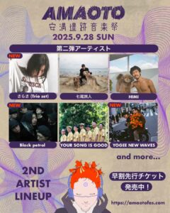 2025年9月28日(日)に大阪・安満遺跡公園にて開催される「安満遺跡音楽祭」の第2弾出演アーティストが発表され、さらさ(Trio set)、Black petrol、YOGEE NEW WAVESの3組が出演決定。