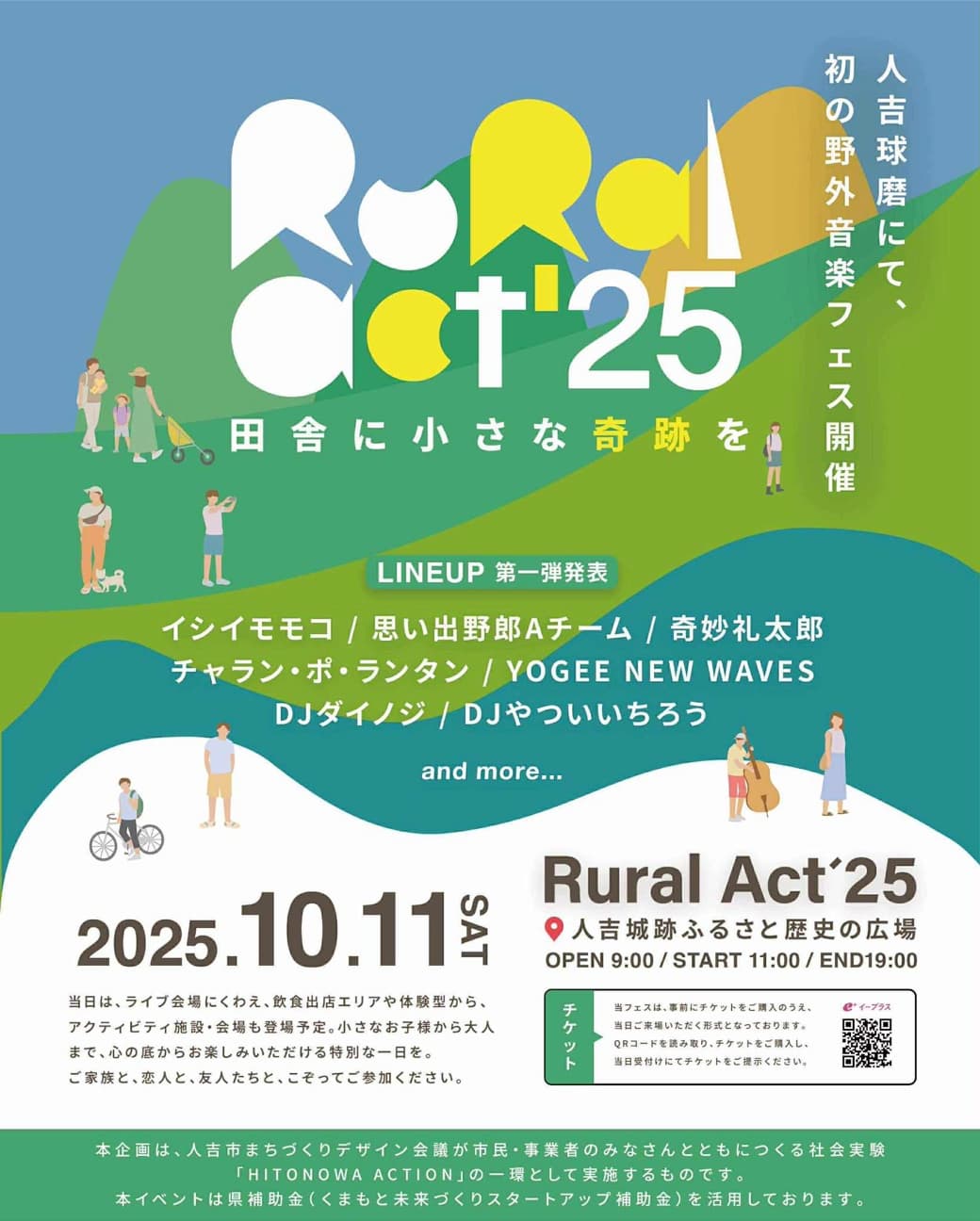 2025年10月11日(土)に熊本・人吉城跡ふるさと歴史の広場にて開催される「Rural Act 25」の第1弾出演アーティストが発表された。