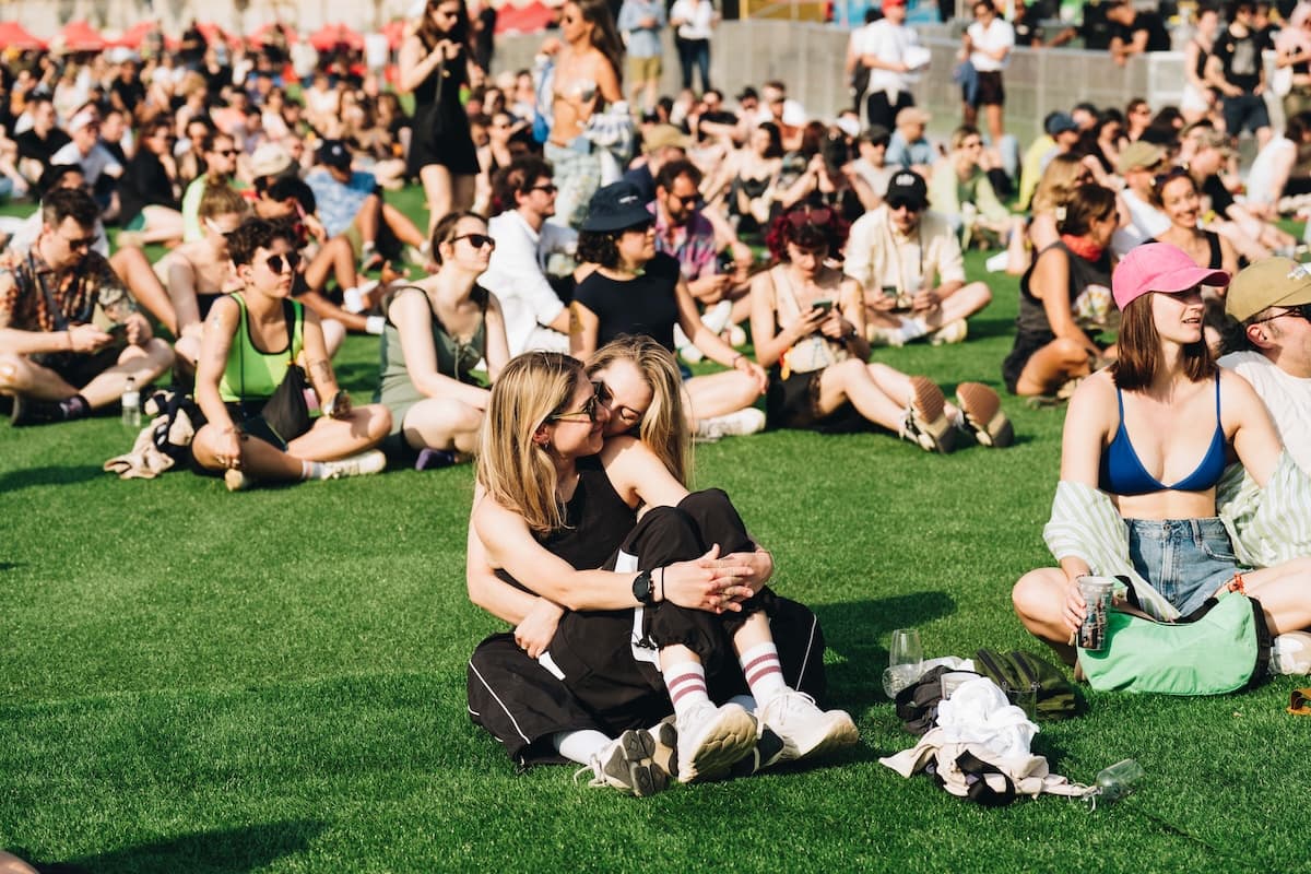 会場にはそうしたメッセージに呼応するように、多様性に満ちた人々が集まっていた。様々な年代の男女がフェスティバルに参加していたが、全体を通じて目立ったのは、若い女性たちのグループとLGBTQ+のカップルである。あくまでも個人的な体感レベルでいえば、チャーリーとともにヘッドライナーをつとめたトロイ・シヴァンが登場した1日目にはゲイのカップル、サブリナ・カーペンター、YOASOBIが登場した2日目は若い女性とアジア系がやや多いといった具合にラインナップによって来場者のテイストは違った。そして、ドラァグクイーンの影響が強いチャペルが登場する最終日は、LGBTQ+の象徴であるピンクを取り入れたカウガール集団をはじめ、とりわけ自由で個性的な装いの参加者が多く、文字通りのお祭り騒ぎであった。「どういう人たちに来てほしいのか」をフェス側が明確に示し、それに反応した人々が集まったといえるだろう。異なるコミュニティが一箇所に集まると、混乱や対立が生じてしまうことがある。フェスにおいてそれは、しばしば「あいつらが出るからこんな客が来る」といったネガティブな反応にも繋がる。