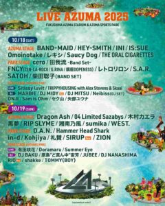 10月福島「LIVE AZUMA 2025」最終発表でSIRUP、DJ MIDY、RiOの3組追加。タイムテーブルも公開