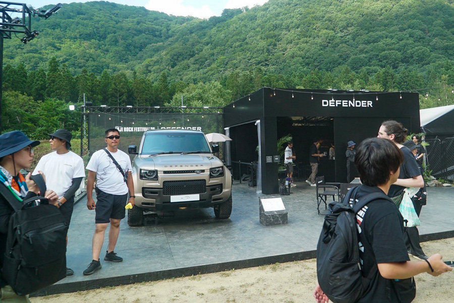 今年からフジロックをサポートしたディフェンダーは、2つのエリアでブース展開を実施。イエロークリフでは日本市場向け限定モデル「ディフェンダー アーバン ビート エディション」を展示し、オレンジカフェではフラッグシップモデル「ディフェンダー オクタ」を展示。オーナー専用ラウンジも併設された。また、両ブースでは回答者にはオリジナルTシャツがプレゼントされる来場者アンケートも実施。重厚感あふれる空間が楽しめた。