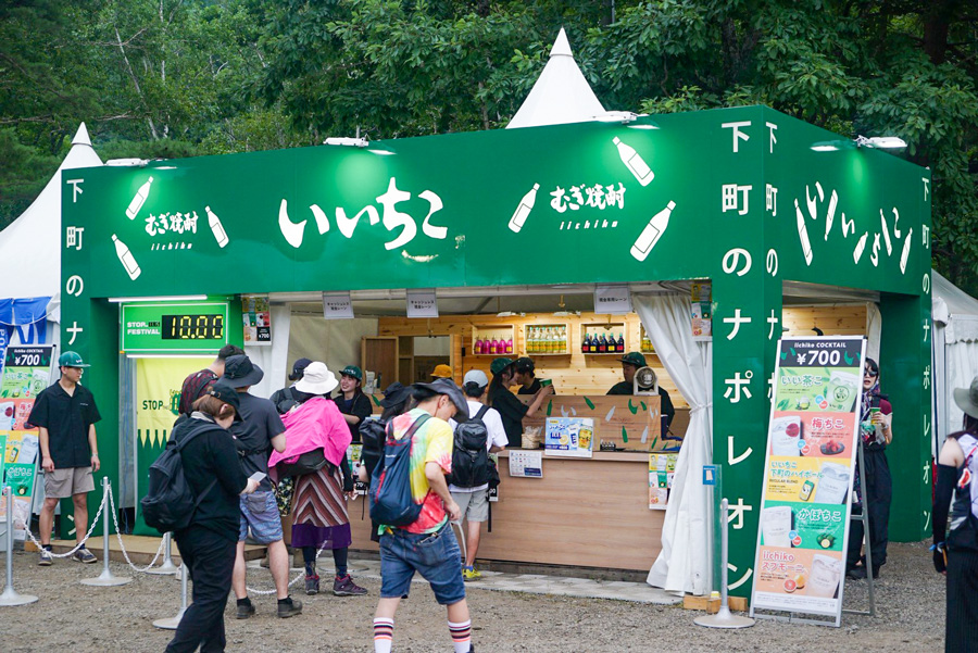 いいちこは、“いいちこ下町のハイボール”、まろやかな味わいの“いい茶こ”、カボス果汁を掛け合わせた“かぼちこ”、酸味や塩味が絶妙な“梅ちこ”、甘酸っぱさが爽やかな“iichikoスプモーニ”の5種類のカクテルを提供。またいいちこブース恒例となっている、トップウォッチを10秒スタート&11.15(いいちこ)秒で止める“STOP THE 11.15(いいちこ)FESTIVAL”も実施。コラボグッズをゲットしたい多くのフジロッカーがチャレンジしていた。