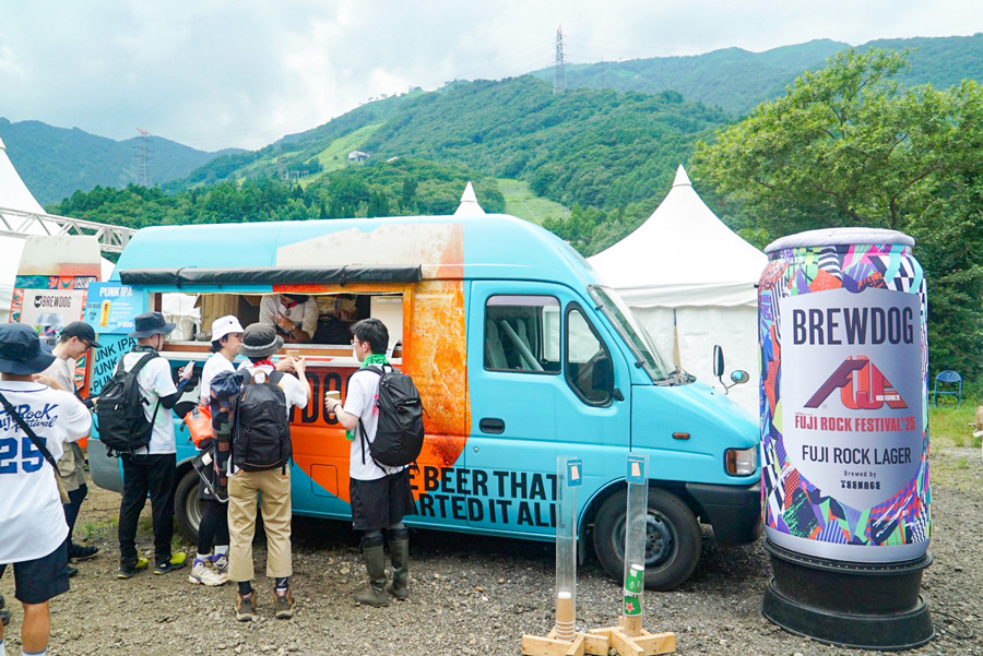 BREWDOGは、フジロックとして初めてのコラボビール「FUJI ROCK LAGER」(フジロック ラガー)とそのほか4種類のビールを販売。“大自然の中で音楽を楽しむための最高の1杯”を追求して製造された特別なクラフトビールが誕生した。また、一杯購入につきスタンプが1つゲットでき、スタンプを7つ集めるとオリジナルTシャツがもらえるプレゼント企画も実施。