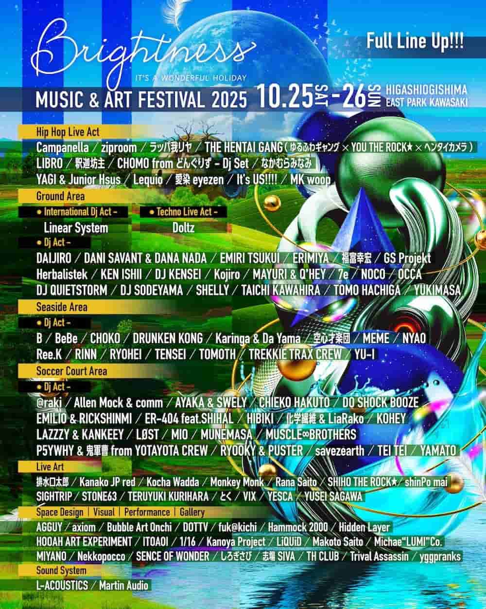 2025年10月25日(土)・26日(日)に神奈川・東扇島東公園にて開催される「Brightness Music & Art Festival 2025」の第3弾出演アーティストが発表された。