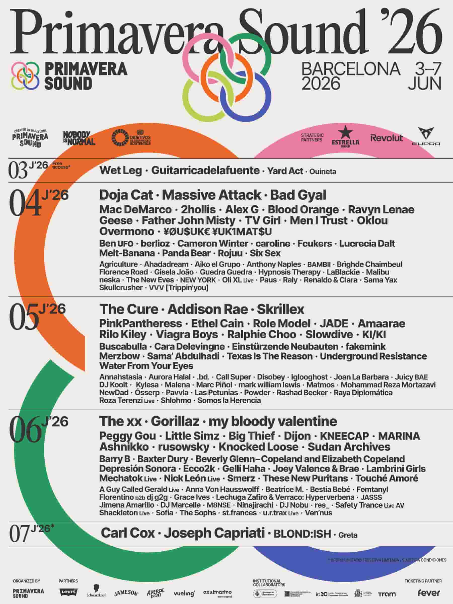 【Primavera Sound 2026】スペイン・プリマヴェーラの日割り発表。TV Girl、Sudan Archivesの追加出演も決定