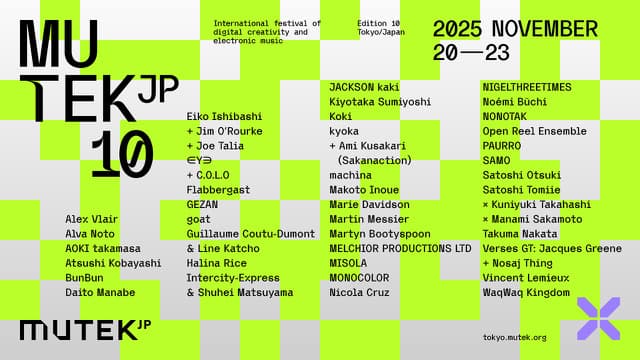 2025年11月20日(木)〜23日(日)の4日間、東京・Spotify O-EAST、WWW、MIYASHITA PARK「or」、渋谷スクランブル交差点、渋谷ヒカリエ ヒカリエホールBにて開催される「MUTEK.JP 2025 Edition 10」のタイムテーブルと各プログラムが発表された。