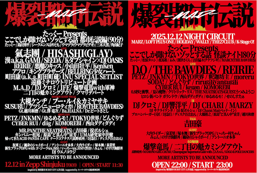 2026年12月12日(金)に新宿にて、「爆裂都市伝説M.A.D」が開催されることが発表された。
