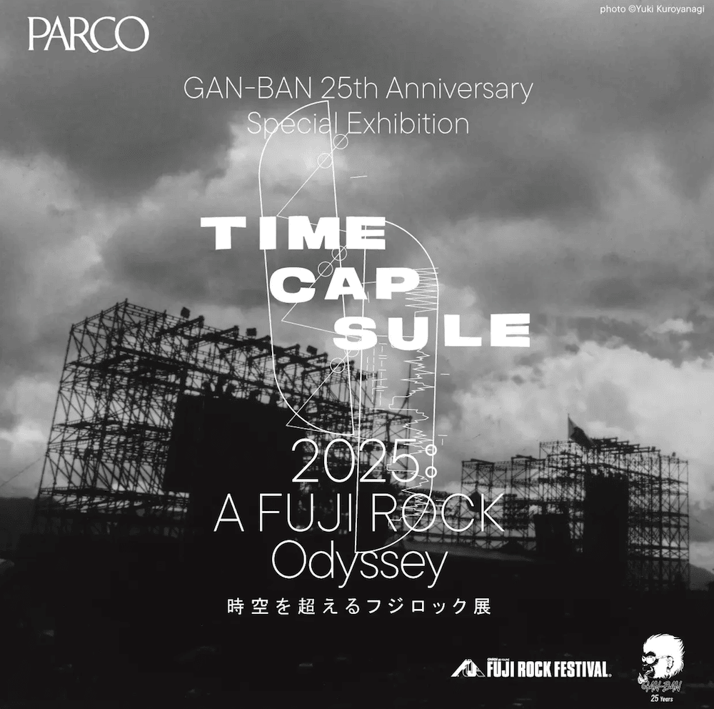 2025年12月26日(金)〜2026年1月12日(月・祝)にわたり、東京・渋谷PARCO 4F 「PARCO MUSEUM TOKYO」にて、「FUJI ROCK FESTIVAL」(フジロックフェスティバル)のオフィシャルショップ「岩盤/GAN-BAN」の25周年を記念した特別展「GAN-BAN 25th Anniversary Special Exhibition TIME CAPSULE 2025: A FUJI ROCK Odyssey ― 時空を超えるフジロック展 ―」が開催される。