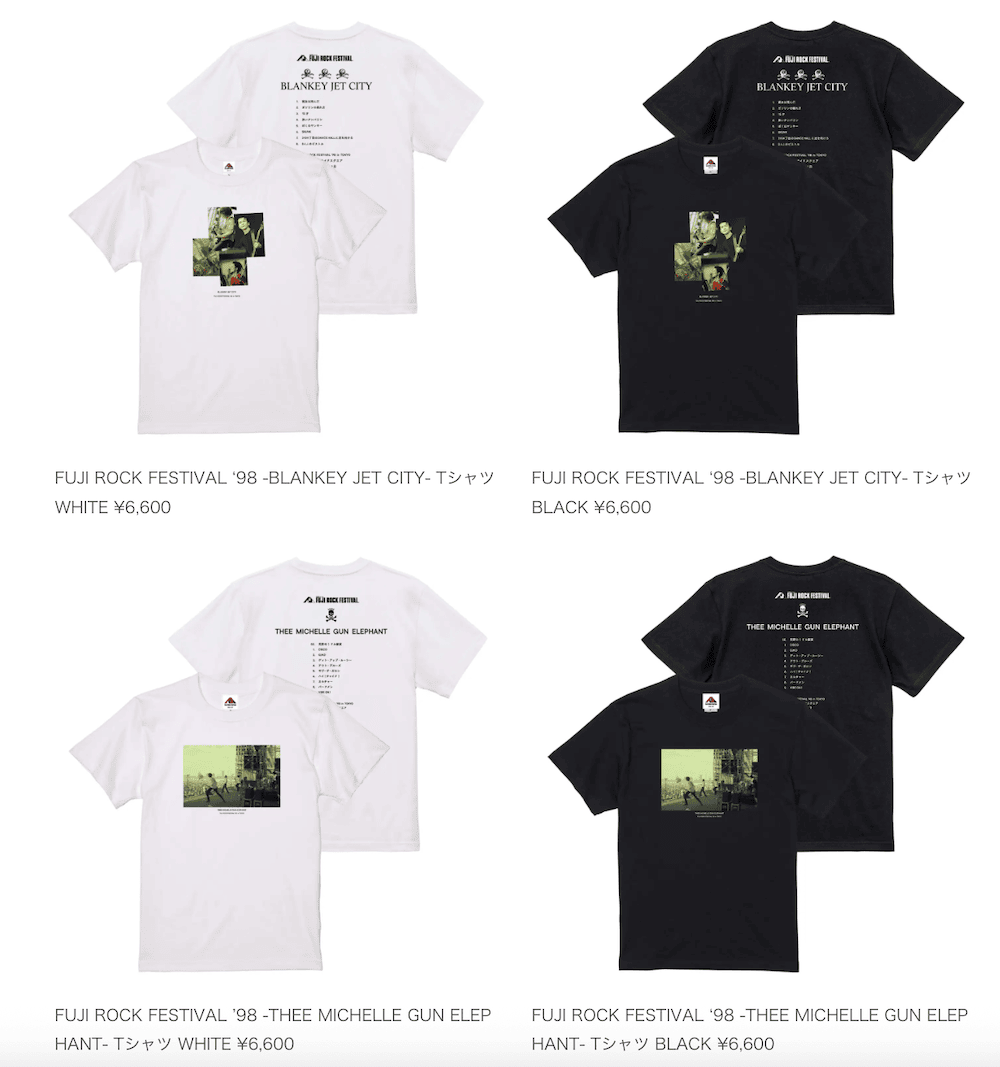 また、展覧会限定のスペシャルミュージアムショップが登場し、本展オリジナルグッズに加え、フジロック’98のステージがプリントされたブランキー・ジェット・シティ、ミッシェル・ガン・エレファントとのスペシャルコラボTシャツも販売される。