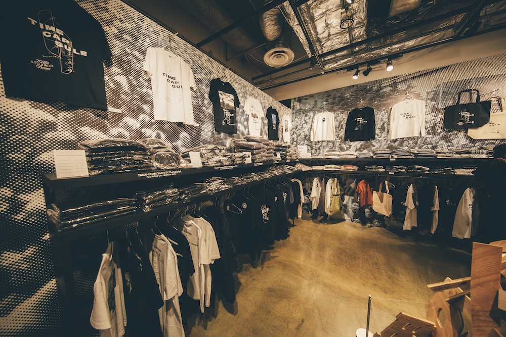 そして展示の先に現れるのは、オリジナルグッズが並ぶミュージアムショップ。ここではフジロック’98のステージをとらえた、BLANKEY JET CITYやTHEE MICHELLE GUN ELEPHANTのコラボTシャツや、フジロック・コレクションの限定アイテムが提供される。それらは単なる商品ではなく、フジロックとGAN-BAN の歴史を象徴する貴重なアーカイブと言えるだろう。