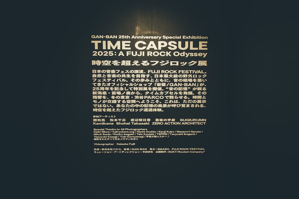 そのGAN-BANの設立25周年を記念し、12月26日より渋谷PARCO 4FのPARCO MUSEUM TOKYOで、『TIME CAPSULE 2025: A FUJI ROCK Odyssey -時空を超えるフジロック展-』が開催。今回は、25年の軌跡とフジロックの記憶を体験した展覧会の模様をレポートする。
