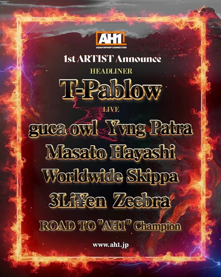T-Pablowがヘッドライナーを務め、ほかにも3Li¥en、guca owl、Masato Hayashi、Worldwide Skippa、Yvng Patra、Zeebraが出演する。また、AH1メインステージへの出場権を賭けた、ラップパフォーマンスのバトルイベント“ROAD TO AH1”の優勝者の出演も決定している。