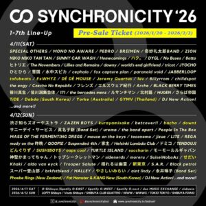 2026年4月11日(土)・12日(日)に東京・渋谷にて開催される「SYNCHRONICITY’26」(シンクロニシティ)の第7弾出演アーティストが発表され、kurayamisaka、Jeremy Quartus、tofubeatsら22組追加。