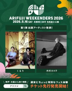 2026年5月16日(土)に兵庫県三田市 有馬富士公園にて開催されるアリフジウィークエンダーズの第1弾アーティストが発表となった。
