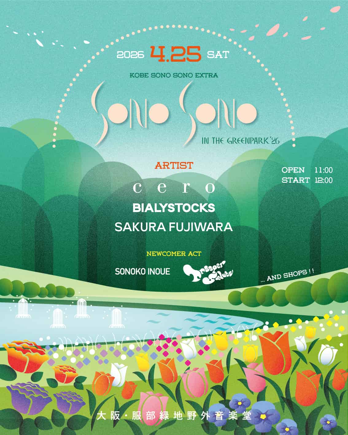 4月大阪「SONO SONO in the greenpark ’26」第1弾発表でcero、藤原さくら、Bialystocksら3組決定