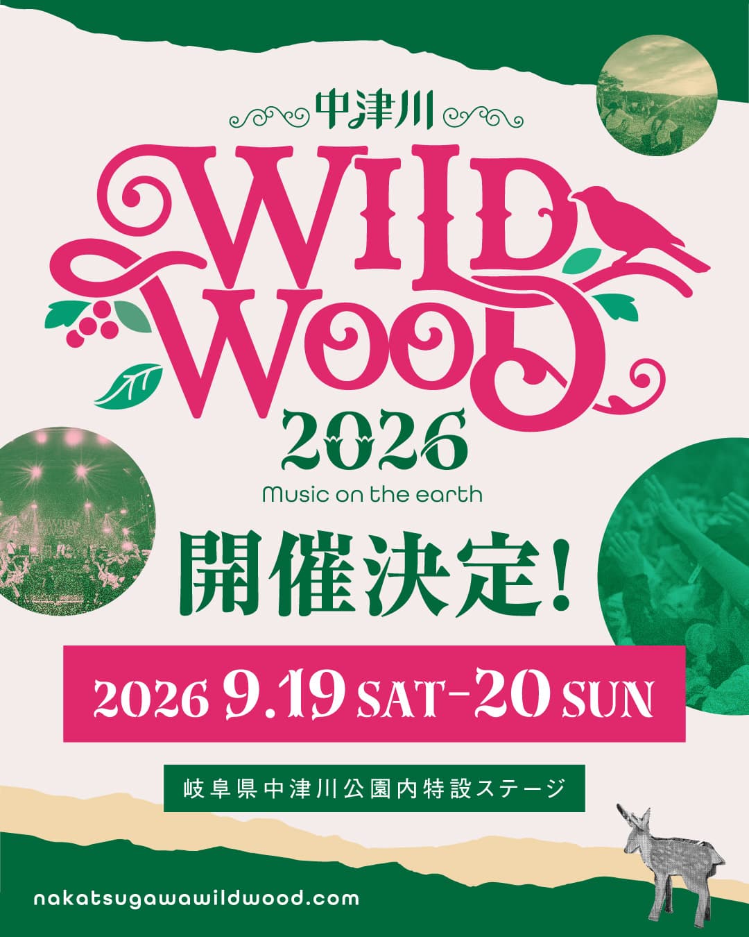 2026年9月19日(土)・20日(日)に岐阜県中津川公園内特設ステージにて「中津川 WILD WOOD 2026」が開催されることが発表された。