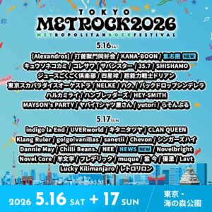 2026年5月16日(土)・17日(日)に東京・海の森公園にて、5月30日(土)・31日(日)に大阪・海とのふれあい広場にて開催される「METROCK2026」の最終出演アーティストが発表され、WEST. 、氣志團、NEWSの3組追加。