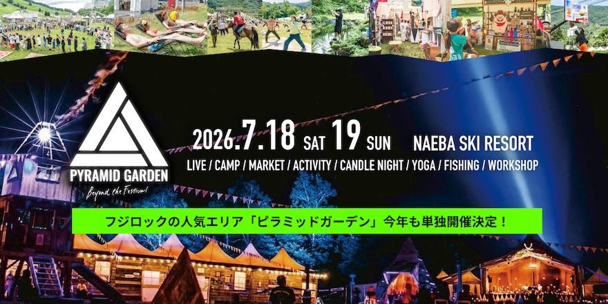 フジロックでも人気のキャンプサイトエリアPYRAMID GARDENが、今年もフジロック本番に先駆けて単独フェスとして開催することが発表された。