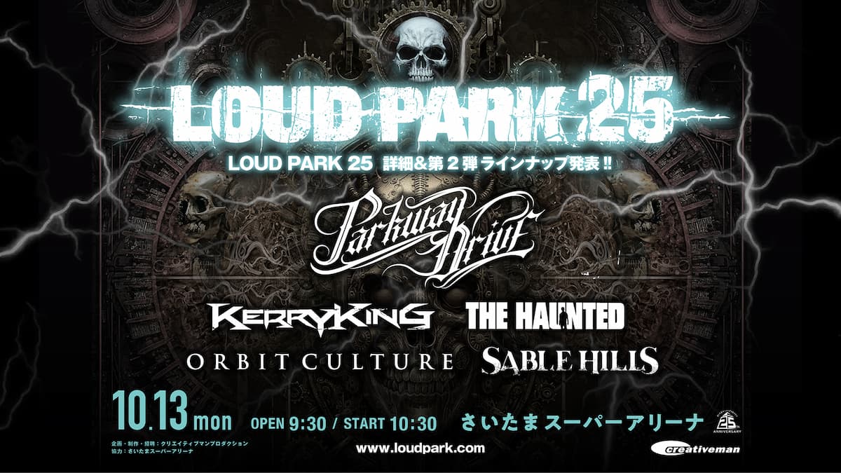 シェア 開催概要 日程 2025/10/13(月) 会場 埼玉 さいたまスーパーアリーナ ジャンル 屋内1DAY 会場・アクセス 埼玉県さいたま市中央区新都心8 Googleマップを開く 最新ニュース 2025.8.2 【LOUD PARK 25】ラウドパーク第4弾発表でBULLET FOR MY VALENTINE、HEAVEN SHALL BURNら4組追加 2025年10月13日(月・祝)に埼玉・さいたまスーパーアリーナにて開催される「LOUD PARK 25」(ラウドパーク)の第4弾出演アーティストが発表され、BULLET FOR MY VALENTINE、HEAVEN SHALL BURNら4組追加。 2025.5.30 【LOUD PARK 2025】ラウドパーク追加発表でTHE GHOST INSIDE出演決定 2025年10月13日(月・祝)に埼玉・さいたまスーパーアリーナにて開催される「LOUD PARK 2025」(ラウドパーク)の追加出演アーティストが発表され、THE GHOST INSIDE出演決定。 2025.4.28 【LOUD PARK 2025】ラウドパーク第2弾発表でKERRY KING、THE HAUNTEDら4組決定 2025年10月13日(月・祝)に、埼玉・さいたまスーパーアリーナにて開催される「LOUD PARK 2025」(ラウドパーク)の第2弾アーティストが発表され、KERRY KING、THE HAUNTEDら4組追加。 2023.2.3 【LOUD PARK 2023】ラウドパーク追加発表でKREATOR、BLEED FROM WITHINの2組決定 2023年3月25日(土)・26日(日)に、大阪・インテックス大阪、千葉・幕張メッセにて開催される「LOUD PARK 2023」(ラウドパーク)の追加ラインナップが発表され、KREATOR、BLEED FROM WITHINの2組追加。 関連サイト オフィシャルサイト Facebook Instagram X(旧Twitter) 全国フェス検索 開催月検索 1月2月3月4月5月6月7月8月9月10月11月12月 エリア検索 北海道/東北関東北陸/甲信越東海関西中国/四国九州/沖縄オンライン タイプ別検索 屋外1!DAY屋内キャンプサーキット1DAYオールナイト無料オンライン
