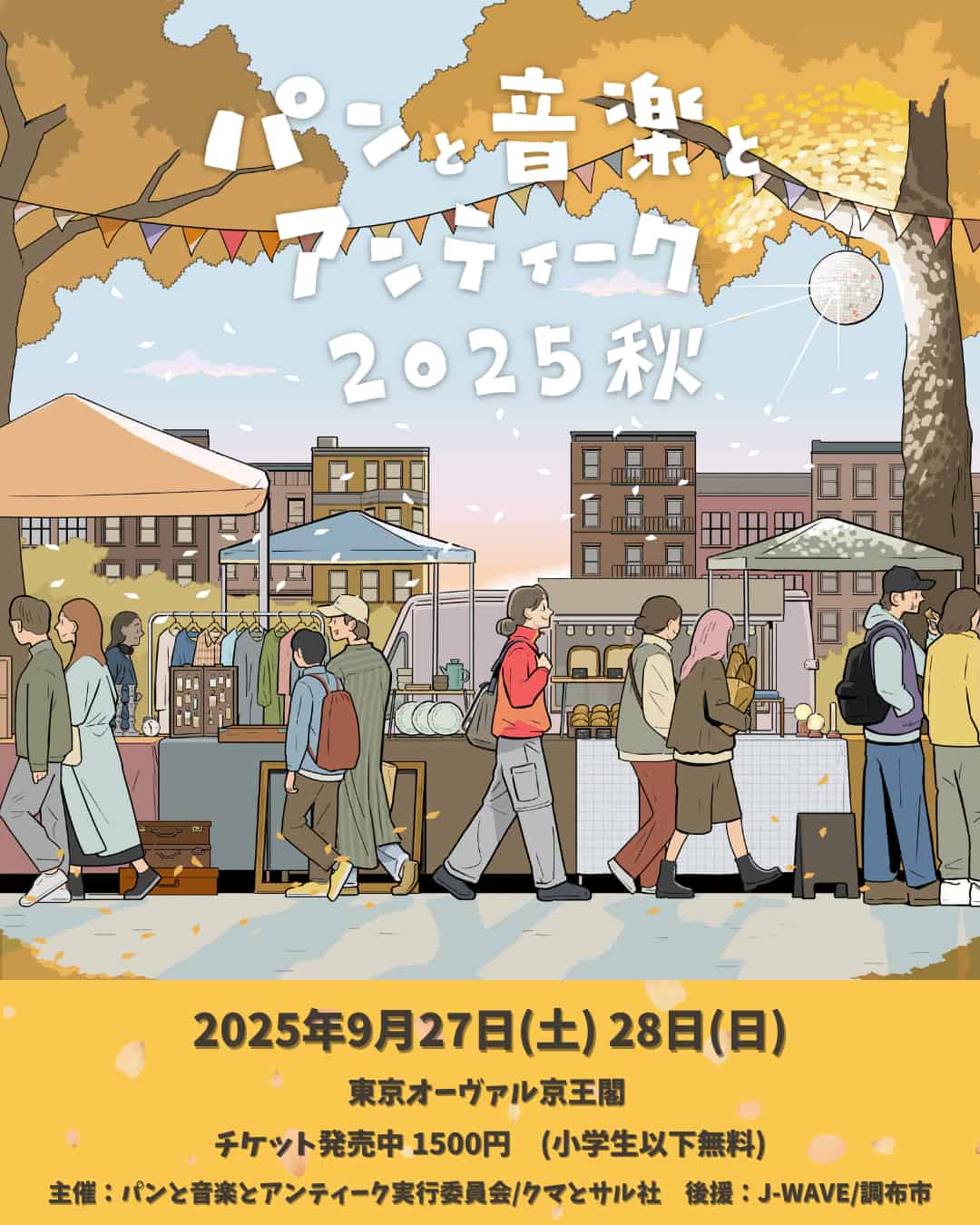 シェア 開催概要 日程 2025/09/27(土) - 09/28(日) 会場 東京 東京オーヴァル京王閣 ジャンル 屋外 会場・アクセス 東京都調布市多摩川4丁目31-1 Googleマップを開く 最新ニュース 2025.1.19 3月東京「パンと音楽とアンティーク」第1弾発表で、KIRINJI、パソコン音楽クラブら出演決定 2025年3月29日(土)・30日(日)に東京・東京オーヴァル京王閣にて開催される「パンと音楽とアンティーク」の第1弾出演アーティストが発表され、KIRINJI、パソコン音楽クラブら出演決定。 関連サイト オフィシャルサイト Instagram X(旧Twitter) 全国フェス検索 開催月検索 1月2月3月4月5月6月7月8月9月10月11月12月 エリア検索 北海道/東北関東北陸/甲信越東海関西中国/四国九州/沖縄オンライン タイプ別検索 屋外1!DAY屋内キャンプサーキット1DAYオールナイト無料オンライン