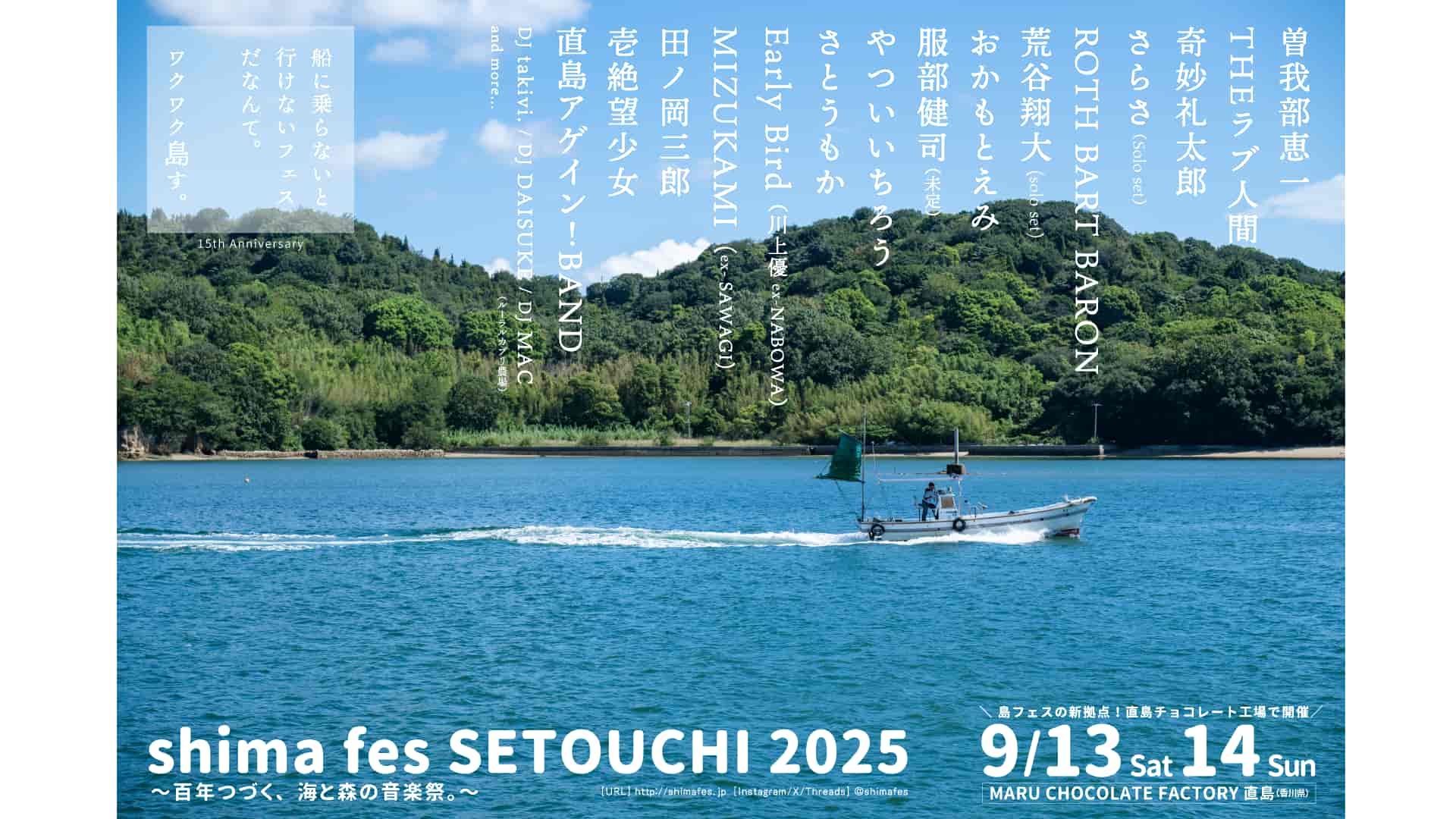 シェア 開催概要 日程 2025/09/13(土) - 09/14(日) 会場 香川 MARU CHOCOLATE FACTORY ジャンル 屋外 会場・アクセス 香川県香川郡直島町890-73 Googleマップを開く 関連サイト オフィシャルサイト Facebook Instagram X(旧Twitter) 全国フェス検索 開催月検索 1月2月3月4月5月6月7月8月9月10月11月12月 エリア検索 北海道/東北関東北陸/甲信越東海関西中国/四国九州/沖縄オンライン タイプ別検索 屋外1!DAY屋内キャンプサーキット1DAYオールナイト無料オンライン