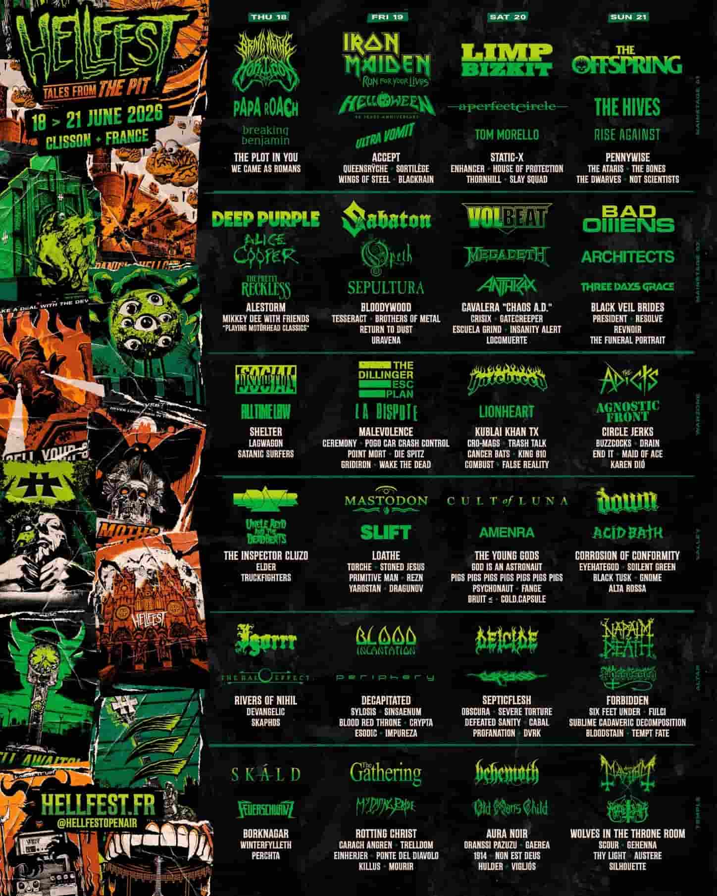 2026年6月18日(木)~21日(日)にフランス・クリッソンにて「HELLFEST 2026」(ヘルフェス)の開催決定とラインナップが発表された。